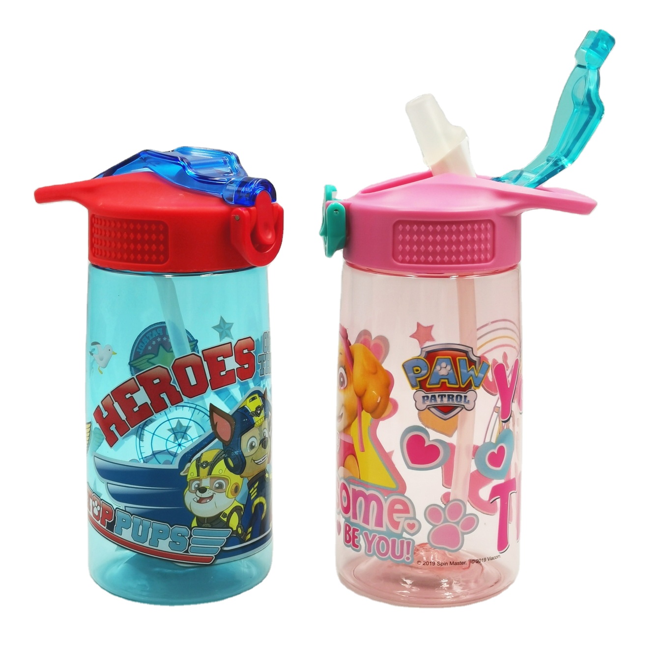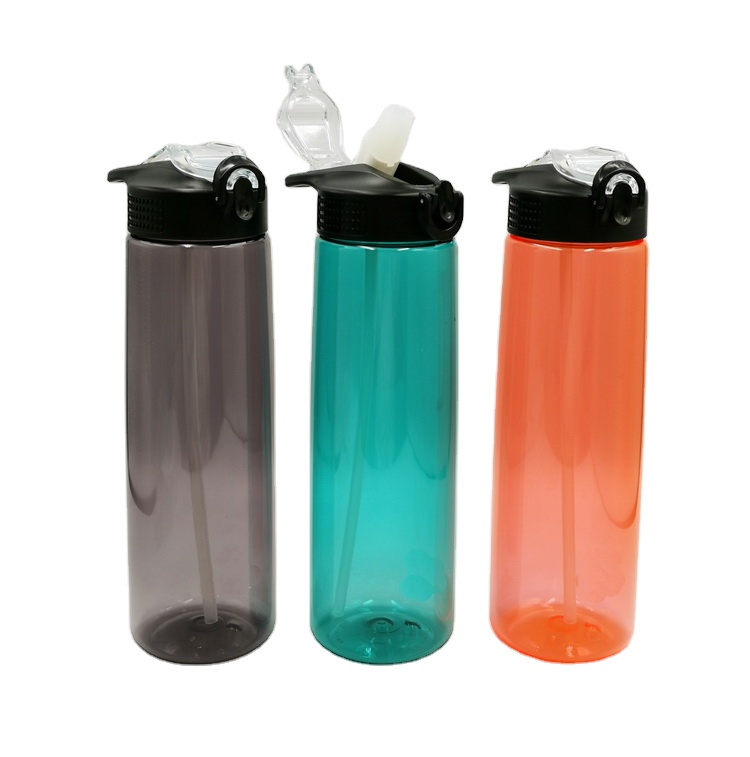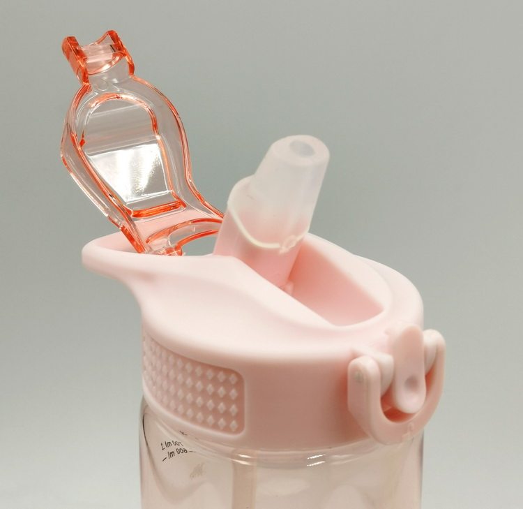 Hot sell one touch open straw bottle. Cap with button and lock.