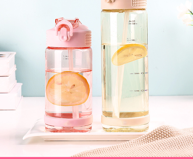 Hot sell one touch open straw bottle. Cap with button and lock.
