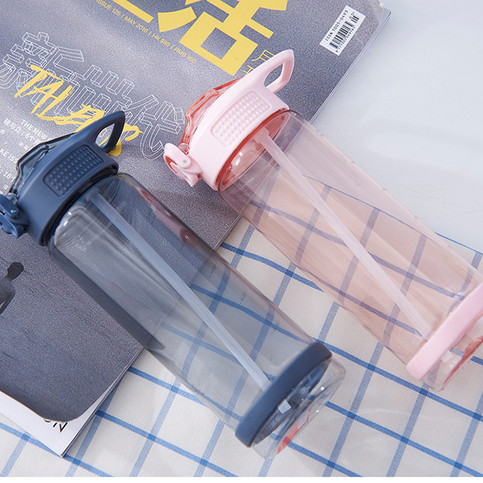 Hot sell one touch open straw bottle. Cap with button and lock.