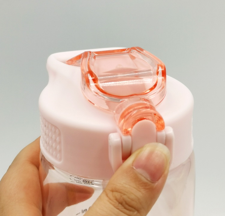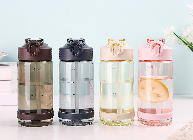 Hot sell one touch open straw bottle. Cap with button and lock.