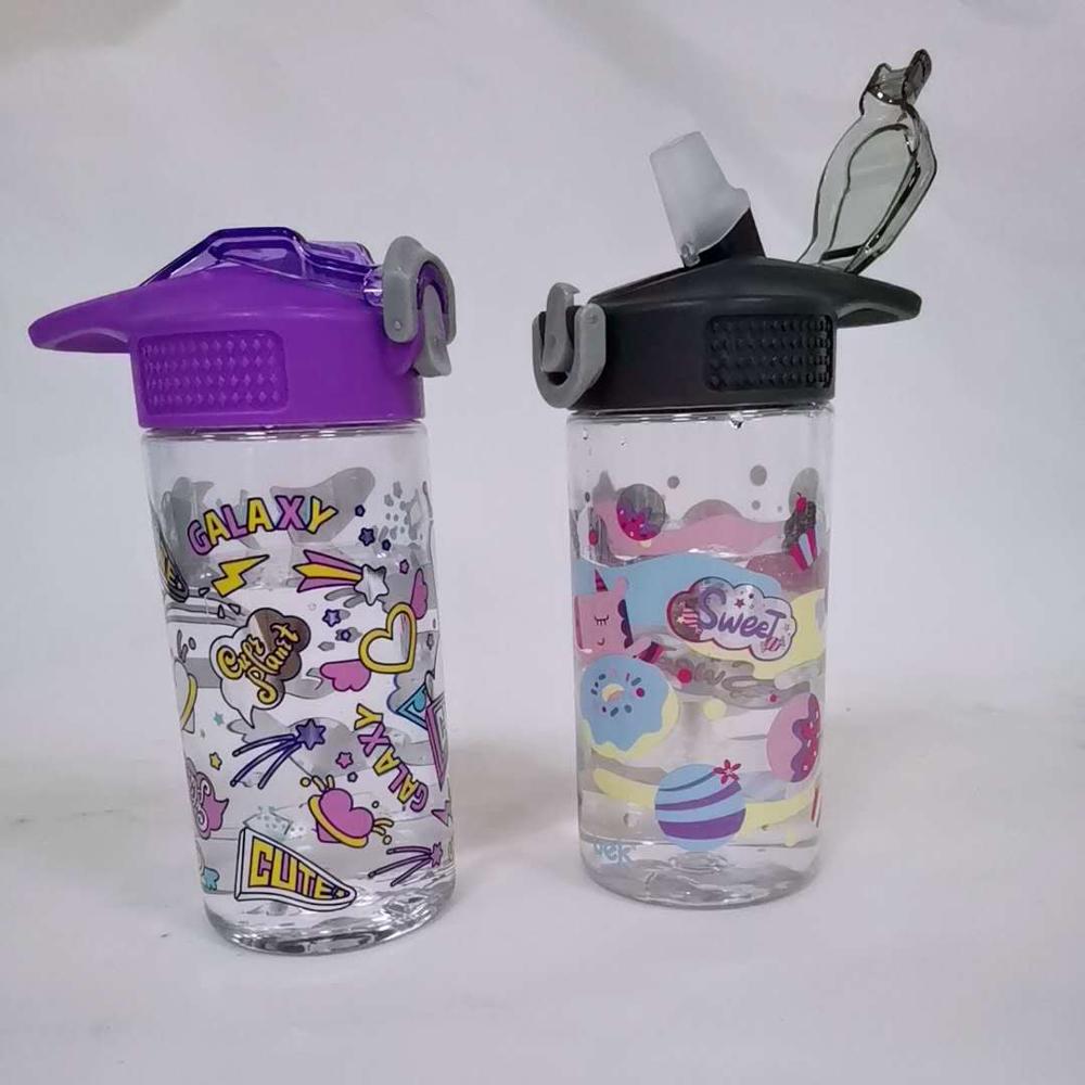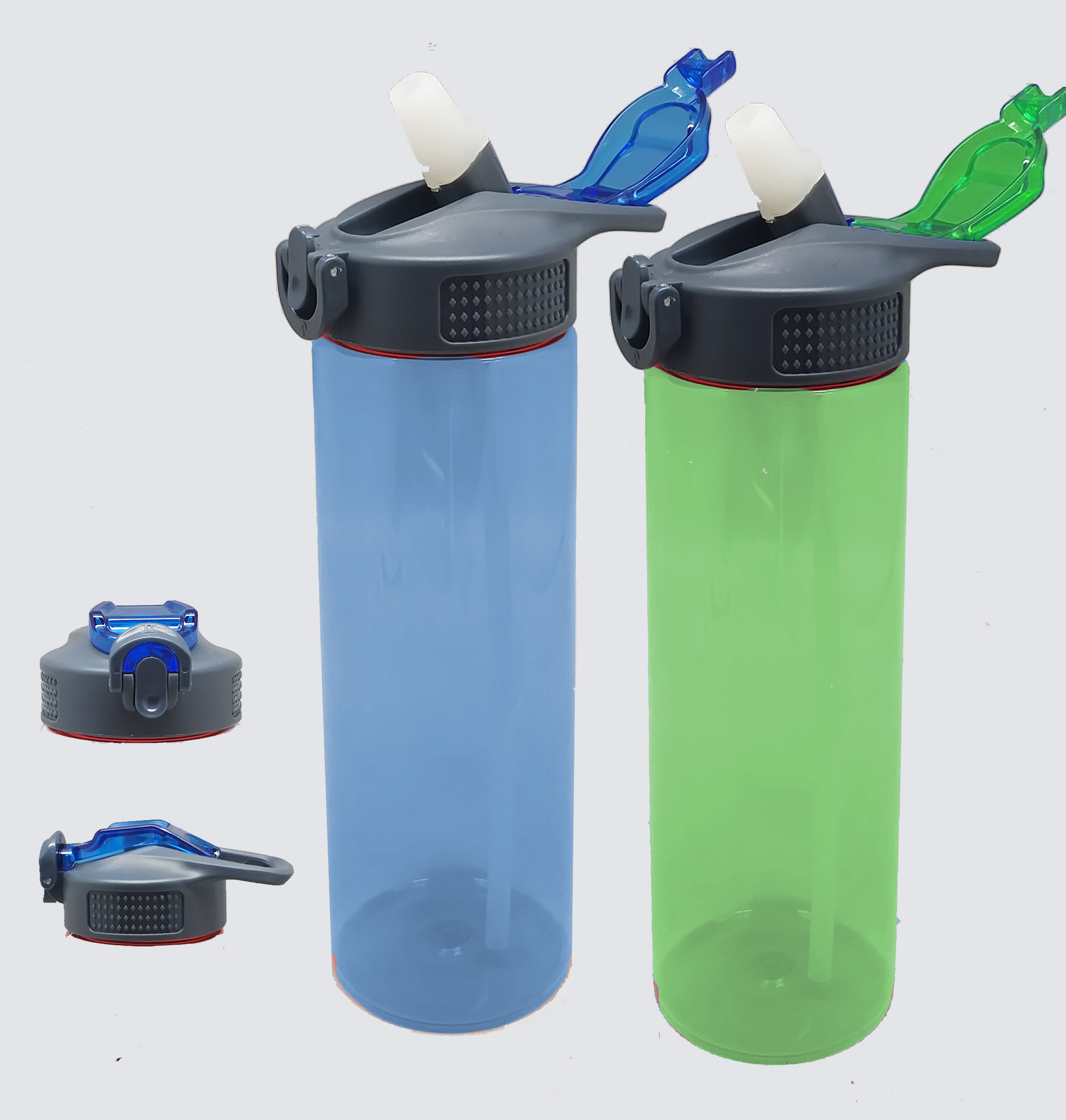 Hot sell one touch open straw bottle. Cap with button and lock.
